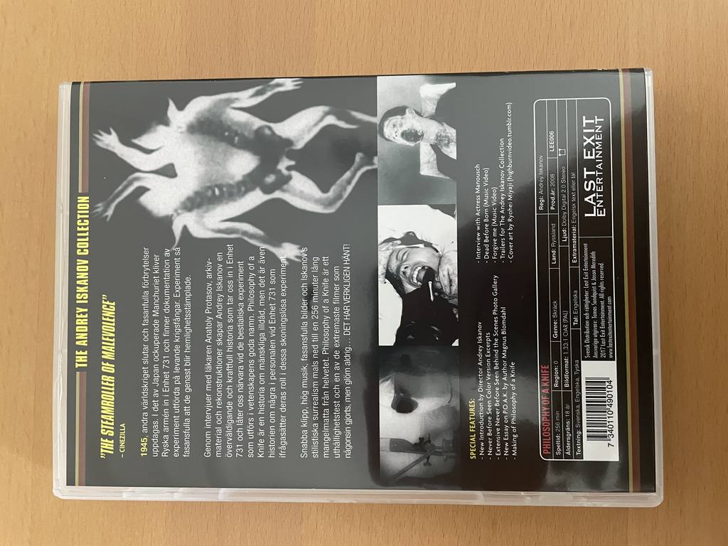 Erleben Sie den ultimativen Horror-Klassiker mit der "PHILOSOPHY OF A KNIFE - FULL UNCUT SPECIAL EDITION". Diese exklusive 2-Disc-Special-Edition bietet Ihnen das ganze ungeschnittene Grauen von Andrey Iskanov’s kontroversem Meisterwerk. Lassen Sie sich von der düsteren Geschichte und den verstörenden Bildern in den Bann ziehen. Jeder Moment dieser DVD ist eine intensive Reise durch die Schrecken, die der menschliche Geist ertragen kann. Die hochwertige Verpackung und die einmalige Sammlerausgabe machen dieses Set zum perfekten Must-Have für jeden Splatter-Fan und Liebhaber von Extrem-Horrorfilmen. Überzeugen Sie sich selbst von der schonungslosen Realität, die in dieser Spezialedition auf eindrucksvolle Weise dargestellt wird.