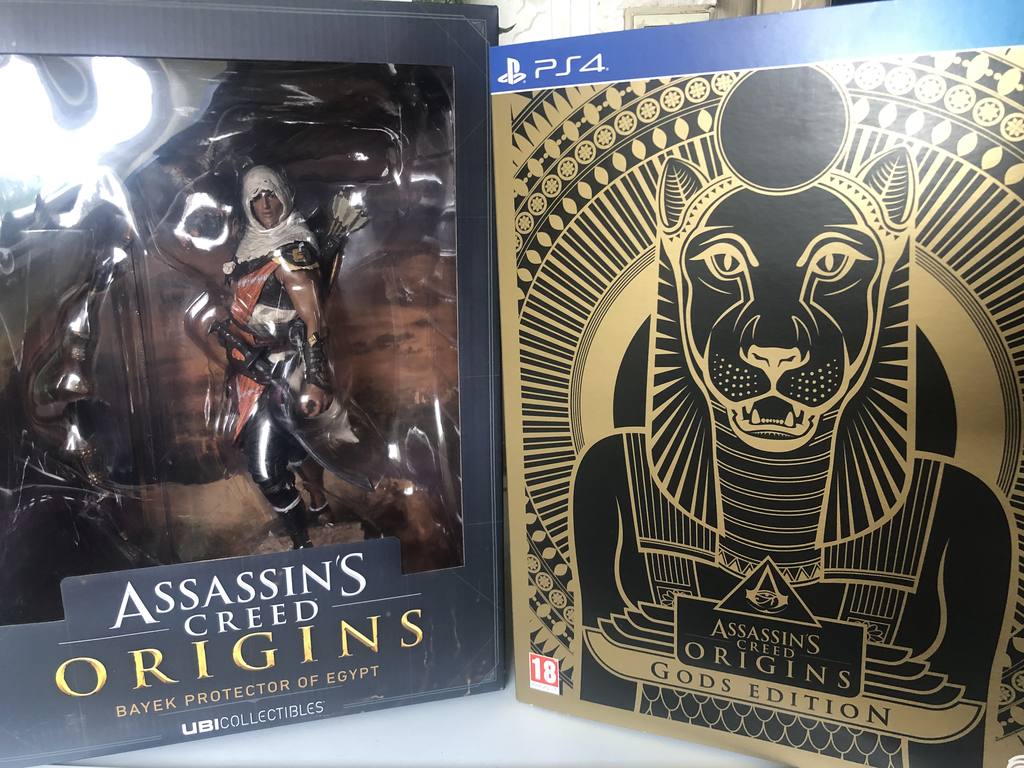 Ein Highlight dieser Edition ist die detailliert gefertigte Figur von Bayek, dem Protagonisten des Spiels. Bayek, der Beschützer Ägyptens, ist in dynamischer Pose dargestellt und trägt typische Assassinen-Kleidung sowie eine Reihe von Waffen, die im Spiel eine Rolle spielen. Diese Sammlerfigur stammt von UbiCollectibles, bekannt für ihre qualitativ hochwertigen und authentischen Videospielrepliken.