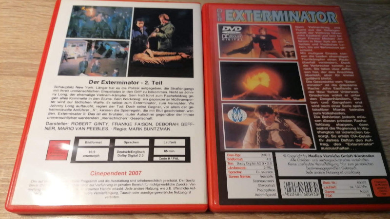 Tauchen Sie ein in die Welt der kompromisslosen Action mit den Kultklassikern "Der Exterminator" und "Der Exterminator 2", beide in der ungeschnittenen Fassung und in Top-Zustand. Diese DVDs sind ein Muss für jeden eingefleischten Action-Fan und Sammler.