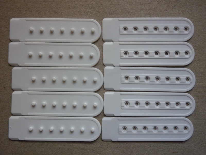 Angeboten werden 5 Snap Back Verschlüsse in der Farbe weiß für Baseball Caps.