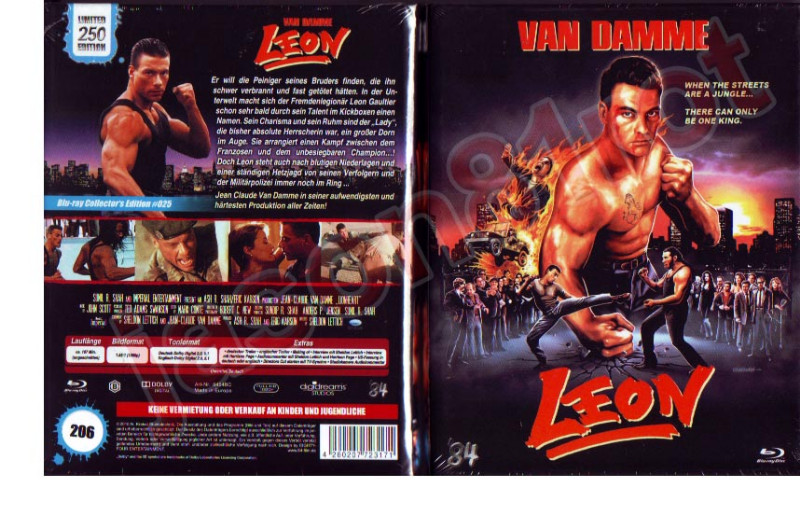 Erleben Sie Action pur mit der "Leon - Limited Edition 250 Blu-Ray NEU OVP Uncut"! Diese limitierte Sammleredition bietet Ihnen den Filmklassiker "Leon" in beeindruckender High-Definition-Qualität auf Blu-Ray. Lassen Sie sich von der kraftvollen Darbietung von Van Damme fesseln, der als Leon Gaultier, ein legendärer Kickboxer, die dunklen Unterwelten durchquert, um Rache für seinen Bruder zu nehmen.