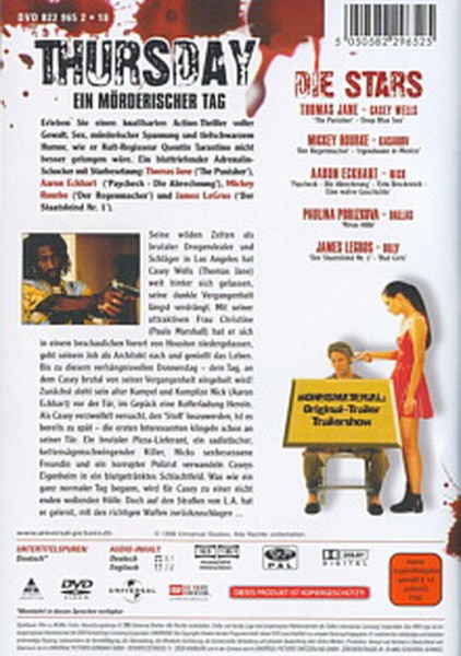 Tauchen Sie ein in die Welt von 'Thursday - Ein mörderischer Tag', einem spannungsgeladenen Actionthriller, der Sie von der ersten Minute an fesseln wird! Diese DVD ist eine ungeschnittene Fassung und verspricht daher ein intensives und ungekürztes Filmerlebnis.