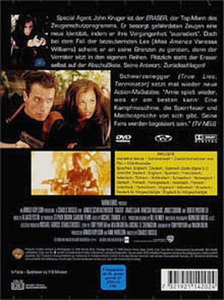 Tauche mit Arnold Schwarzenegger in eine atemberaubende Welt voller Action, Spannung und Nervenkitzel ein! "Eraser" bietet dir einen unvergesslichen Kinoabend voller Adrenalin. Diese DVD enthält den kompletten Spielfilm mit spektakulären Effekten und einer brillanten Bildqualität, die dich direkt ins Geschehen zieht. Die Geschichte von John Kruger, der als US-Marshal Zeugen beschützt und deren Vergangenheit auslöscht, wird dich von der ersten bis zur letzten Minute fesseln.