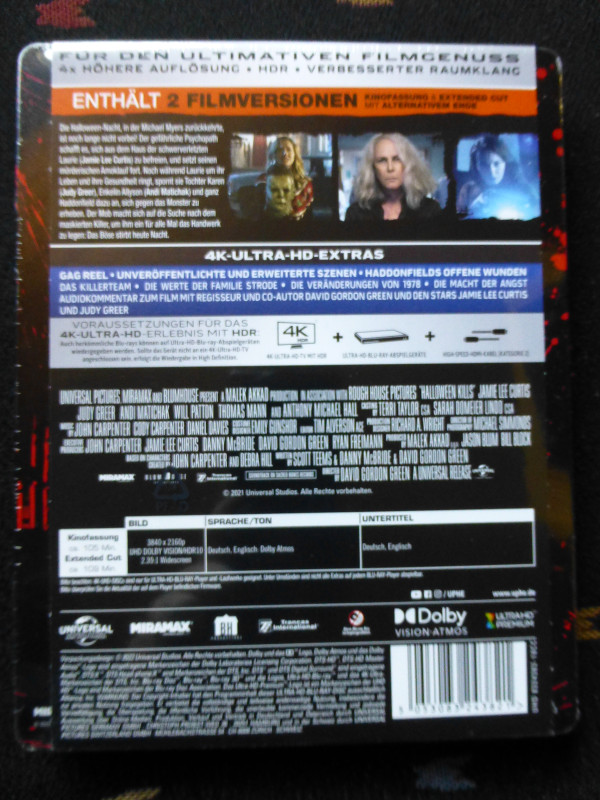 Die Limited Steelbook Edition dürfte für Sammler zusätzlich spannend sein. Schon der Titel signalisiert: Hier geht es nicht nur um den Film, sondern auch um den Reiz einer besonderen Veröffentlichung mit klarem Kultfaktor. Wer Horror im Regal nicht nur sehen, sondern auch fühlen will, trifft mit Halloween Kills 4K Ultra HD eine naheliegende Wahl. Für Fans von Halloween, Michael Myers und kompromisslosem Slasher-Horror bleibt dieser Titel ein Pflichtkandidat.