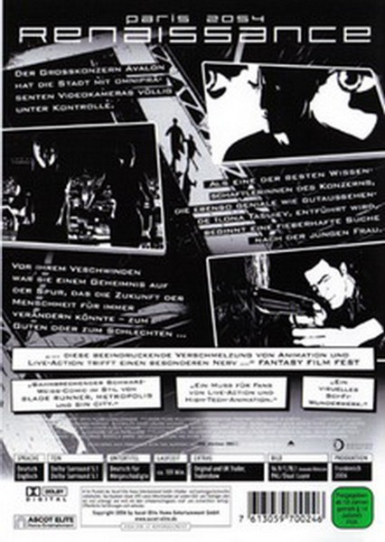 Erleben Sie den fesselnden Science-Fiction-Thriller Renaissance mit Daniel Craig in der Hauptrolle, jetzt als exklusives 2-Disc Special Edition-Set auf DVD. Tauchen Sie ein in das Paris des Jahres 2054, eine düstere Zukunftsvision, in der die Grenzen zwischen Mensch und Maschine verschwimmen. Dieses außergewöhnliche Meisterwerk kombiniert faszinierende Animations-Technologie mit packender Erzählkunst und sorgt für ein einzigartiges Kinoerlebnis direkt in Ihrem Wohnzimmer.