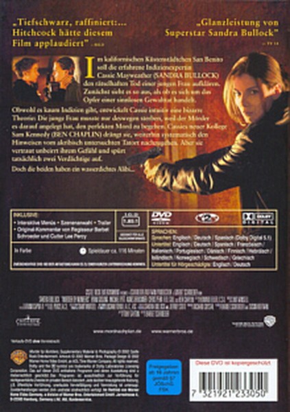Entdecken Sie den packenden Krimi-Thriller "Mord nach Plan" mit Sandra Bullock als Hauptdarstellerin. Diese DVD bietet ein spannendes Filmerlebnis, das Sie an den Rand Ihres Sitzes fesseln wird. Der Film dreht sich um einen perfekt geplanten Mordfall, bei dem nichts so ist, wie es scheint.