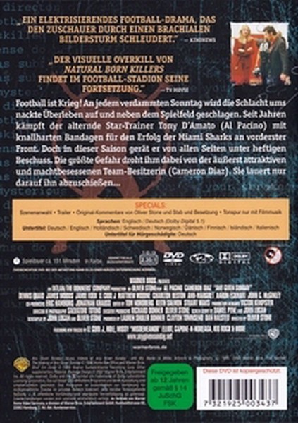 Al Pacino brilliert in der Rolle des abgeklärten Trainers, der seine Mannschaft durch die Höhen und Tiefen des Spiels führt, während Cameron Diaz als ambitionierte Team-Besitzerin eine beeindruckende Performance abliefert. Die intensiven Trainingseinheiten, die unerbittlichen Spielzüge und die emotionale Tiefe der Charaktere machen diesen Film zu einem echten Muss für jeden Action- und Sportfilm-Liebhaber.