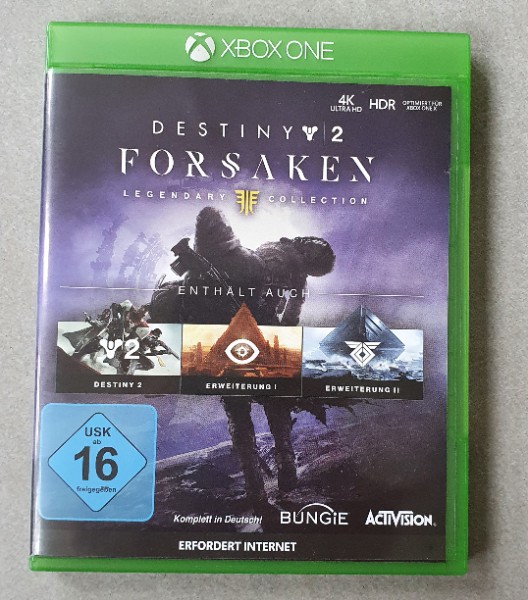 Hol dir jetzt die Destiny 2 Forsaken Legendary Collection für die Xbox One und erlebe ein unvergleichliches Spielerlebnis. Wage dich in eine düstere Welt voller Gefahren und Abenteuer und werde zum Helden, den das Universum braucht!