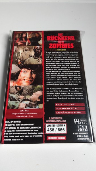 Bestellen Sie jetzt "Die Rückkehr der Zombies (Hartbox) Limited 666 E." und tauchen Sie ein in die Welt des Horrors. Ein Muss für jeden Horror- und Zombie-Film-Fan – lassen Sie sich dieses besondere Sammlerstück nicht entgehen!