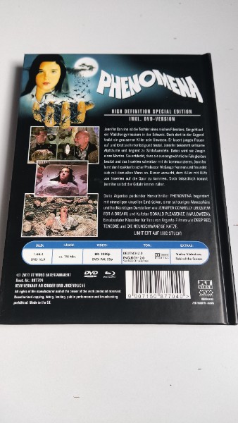 Genießen Sie einen Klassiker des Horror-Genres mit der Phenomena (MEDIABOOK) Limited 1000 Edition. Dieses speziell limitierte Mediabook, das auf nur 1000 Stück weltweit beschränkt ist, bietet nicht nur den kultigen Film von Dario Argento in brillanter Blu-ray-Qualität, sondern auch als DVD-Version. Mit einer atemberaubenden Bildqualität und intensivem Sound, versetzt Sie diese Edition mitten ins Geschehen der düsteren, mysteriösen Welt von Phenomena. Ein absolutes Muss für jeden Film-Enthusiasten und Sammler, der hochwertige und seltene Editionen schätzt.