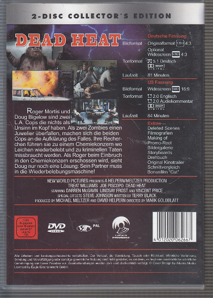 "Dead Heat" ist nicht nur ein Muss für jeden Actionfilm-Fan, sondern auch ein wahres Sammlerobjekt. Diese luxuriöse Edition hebt sich durch hochwertige Verpackung und exklusive Inhalte ab. Erweitern Sie Ihre DVD-Sammlung mit diesem unverwechselbaren Stück Filmgeschichte, das garantiert für spannende und unvergessliche Filmabende sorgt. Holen Sie sich jetzt die 2-Disc Collector's Edition und erleben Sie den Nervenkitzel des rasanten Action-Kinos in seiner ganzen Pracht!