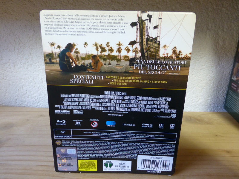 Tauchen Sie ein in die bewegende Welt von "A Star is Born", einem intensiv-emotionalen Drama, das die Herzen aller Zuschauer im Sturm erobert. Diese spezielle Limited Steelbook Edition im italienischen Importformat macht Ihre Sammlung zu etwas ganz Besonderem. Das stilvolle Steelbook mit der ikonischen Gitarren-Silhouette auf der Frontseite und den charakteristischen Hauptdarstellern Bradley Cooper und Lady Gaga verleiht Ihrem Regal einen Hauch von Exklusivität und Eleganz.