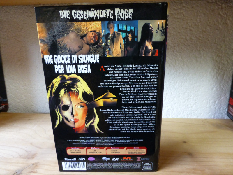 Als Sonderedition wird diese limitierte Auflage nur in geringer Stückzahl produziert, was sie zu einem besonders begehrten Objekt für jeden Liebhaber des Genres macht. Die große Hartbox sorgt dafür, dass die DVD optimal vor Beschädigungen geschützt bleibt und zugleich optisch ansprechend wirkt. Tauchen Sie ein in eine Welt voller Schrecken und Spannung mit "Die geschändete Rose" – ein unverzichtbarer Titel für alle Fans des Horrorfilms!