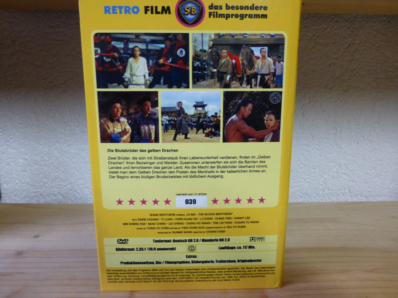 Tauchen Sie ein in die faszinierende Welt des Eastern-Films mit der besonderen Ausgabe von "Die Blutsbrüder des gelben Drachen". Dieser Klassiker von Chang Cheh bringt Ihnen die epische Geschichte von Brüderlichkeit, Rache und Ehre in einer unvergleichlichen Darbietung. Unter der Leitung von Run Run Shaw, einem der bekanntesten Namen der Filmindustrie, führt dieser explosive Shaw-Brothers-Film Sie mitten in aufregende Kampfkunst- und Schwertkampf-Szenen, perfekt inszeniert und unvergleichlich in ihrer Intensität.