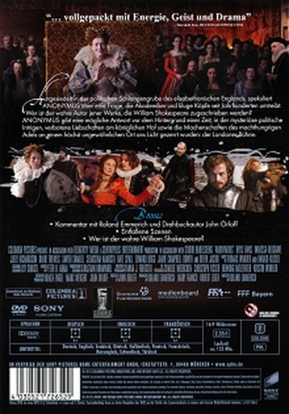 Tauchen Sie ein in eine Welt voller Intrigen und Entdeckungen. "Anonymus" auf DVD nimmt Sie mit auf eine Reise durch die Zeit, die Sie so schnell nicht vergessen werden.