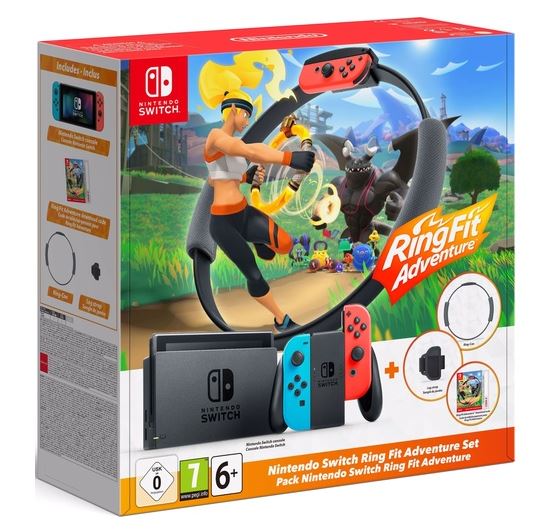 Nintendo Switch neon-rot/neon-blau + Ring Fit Adventure