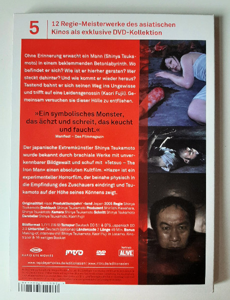 Diese DVD, kategorisiert unter "DVD, Horror", ist unverzichtbar für Sammler und Liebhaber des asiatischen Kinos sowie Fans extremer cineastischer Erfahrungen. "Haze" ist ungeschnitten und erhält aufgrund seines intensiven Inhalts die Altersfreigabe "FSK 18". Dies garantiert, dass die ungeschminkte und rohe Atmosphäre des Films vollständig erhalten bleibt – genau so, wie es Tsukamoto beabsichtigt hat.