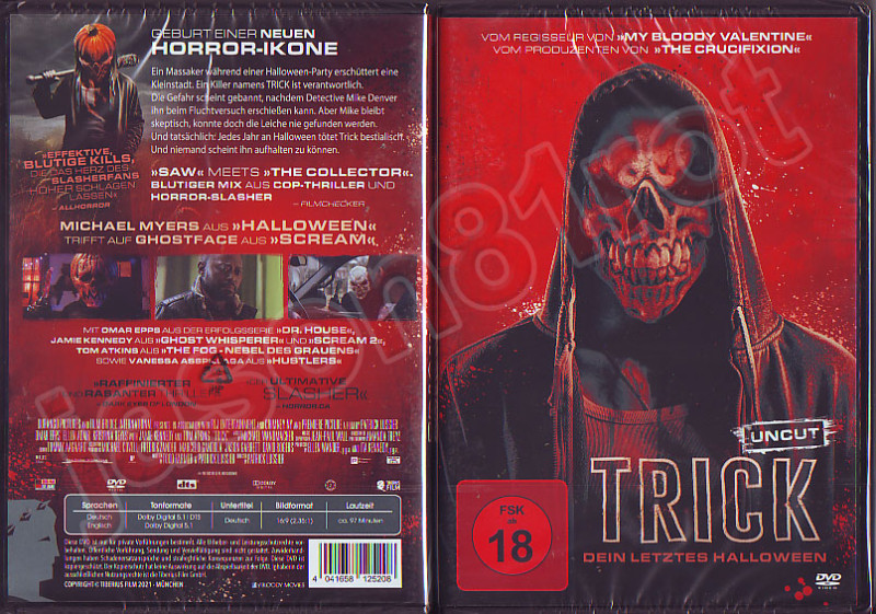 Tauchen Sie ein in den fesselnden Horror-Thriller „Trick – Dein letztes Halloween“, der jetzt neu und in der uncut Version erhältlich ist. Dieser Film, eingestuft als FSK 18, garantiert schaurigen Grusel und extreme Spannung. Vom renommierten Regisseur von „My Bloody Valentine“ und dem Produzenten von „The Crucifixion“, bietet dieser Horrorstreifen eine unvergessliche Erfahrung. Mit einem effektiven, blutigen Kill-Reigen, der die Fans von Filmen wie „Saw meets The Collector“ begeistert, wird jede Minute zum nervenaufreibenden Genuss. Watch as Michael Myers aus “Halloween” trifft auf Ghostface aus “Scream” in diesem packenden Horror-Spektakel! Sichern Sie sich Ihre Kopie von „Trick – Dein letztes Halloween“ und lassen Sie sich von den intensiven Schockmomenten überwältigen!