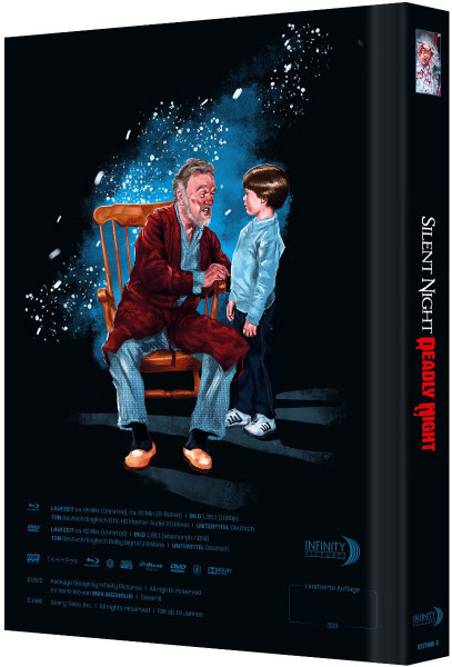 | Extras: | - 24 seitiges Booklet - 2 Audiokommentare - "Oh deer!" Linnea Quigley über Stille Nacht Horror Nacht - "Slay Bells Ring" The Story of Silent Night Deadly Night - Filming Locations Damals und Heute - Kontroversen und Kritiken - US Kinotrailer - 2 US TV Spots - US Radio Spot - Bildergalerie - Kinofassung (82 Min. R-Rated in 1080p) |