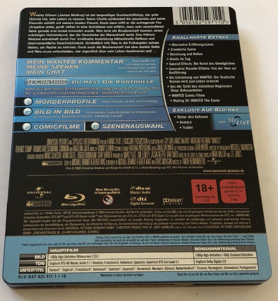 Mit der BluRay-Technologie erleben Sie "Wanted" in überwältigender Bild- und Tonqualität. Verwöhnen Sie Ihre Sinne mit gestochen scharfen Bildern und einem kraftvollen Sound, der Sie mitten ins Geschehen katapultiert.