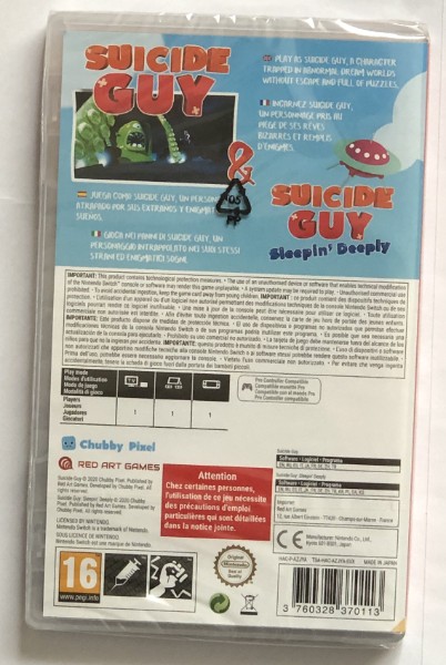 Entdecke die wildesten Träume und die skurrilsten Szenarien mit der Suicide Guy Collection für die Nintendo Switch! Diese außergewöhnliche Spiele-Sammlung, herausgegeben von Red Art Games, versetzt Dich in die Rolle eines liebenswerten, bärtigen Protagonisten innerhalb einer surrealen Traumwelt, wo Spannung und Witz Hand in Hand gehen.