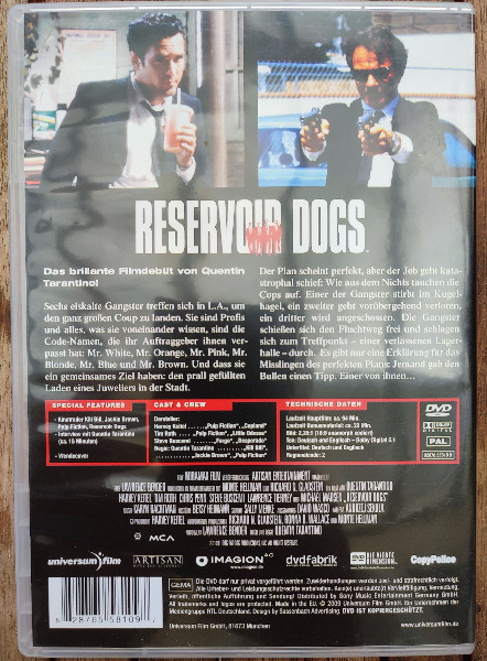 Erleben Sie "Reservoir Dogs" auf R2 DVD – ein zeitloser Klassiker, der jeder DVD-Sammlung das gewisse Etwas verleiht. Lassen Sie sich dieses Meisterwerk des Films nicht entgehen und sichern Sie sich Ihre Ausgabe noch heute!