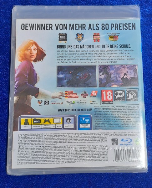 Erleben Sie BioShock Infinite, eines der beeindruckendsten Spiele seiner Generation, jetzt noch neu und original verpackt für Ihre Playstation 3. Tauchen Sie ein in die schwebende Stadt Columbia, wo beeindruckende Grafik, fesselnde Storylines und eine dichte Atmosphäre Sie in ihren Bann ziehen werden. Mit intuitiven Steuerungen und PlayStation Move Features bietet BioShock Infinite ein unübertroffenes Spielerlebnis, welches sowohl erfahrene Gamer als auch Neulinge begeistern wird. Die Originalverpackung stellt die makellose Neuheit und Sammlerwert sicher und die FSK18 Einstufung unterstreicht den intensiven und erwachsenen Inhalt dieses Meisterwerks. Sichern Sie sich jetzt dieses unvergleichliche Gaming-Kunstwerk auf roteerdbeere.com und tauchen Sie ein in eine Welt voller Geheimnisse und Abenteuer.