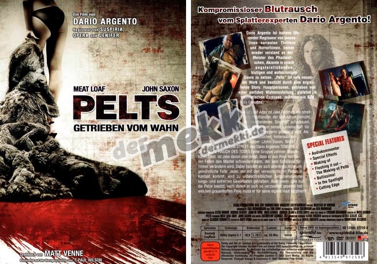 Dario Argento ist Italiens führender Regisseur von innovativen surrealen Thrillern und Horrorfilmen. Immer wieder verstand es der Meister des Phantastischen Akzente in einem angsteinflößenden, blutigen und wahnsinnigen Genre zu setzen. "''Pelts - Getrieben vom Wahn" ist sein neuestes Werk und besticht durch eine ergreifende Story. Die Haupt- charaktere, getrieben von einer perfiden Wahnvorstellung, gipfelnd in traumatischen Exzessen, zeichnen ein Bild des Grauens.