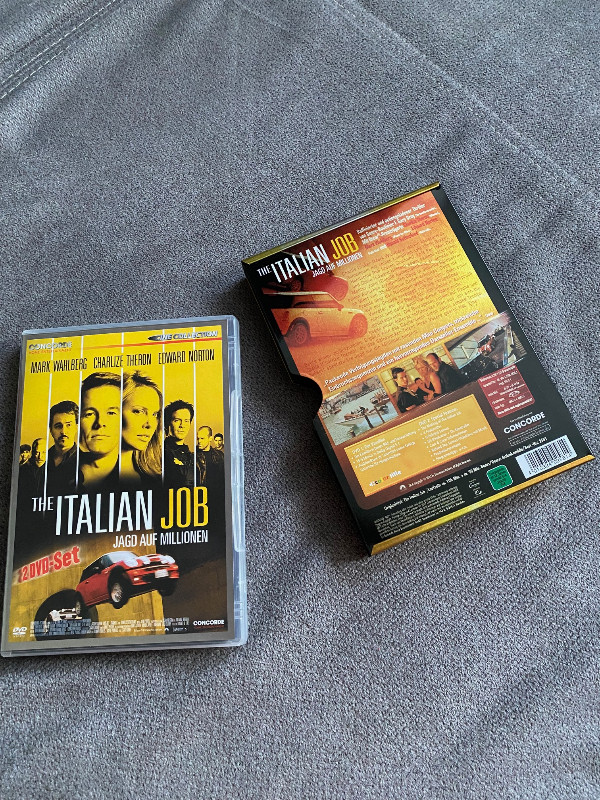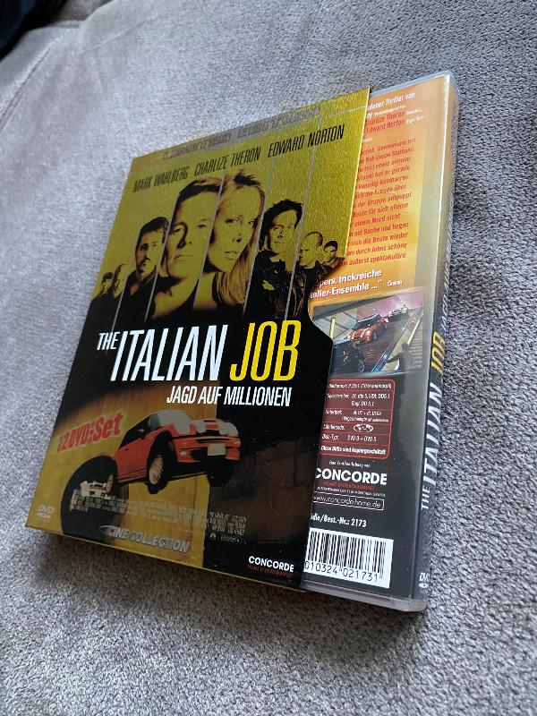 hallo.sie bieten hier auf eine sehr seltene ausgabe von the italian job.die dvd ist in einem steelschuber(wie ein pappschuber aus metall) der film befindet sich in einem sehr guten zustand.
