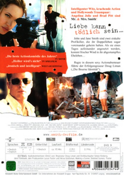 Diese DVD ist ein Muss für jeden Filmfan und bietet Ihnen actionreiche Unterhaltung der Extraklasse. Ob als Geschenk oder für die eigene Sammlung, "Mr. & Mrs. Smith" wird sicherlich einen Platz in Ihrem Herzen und Ihrem Regal finden.
