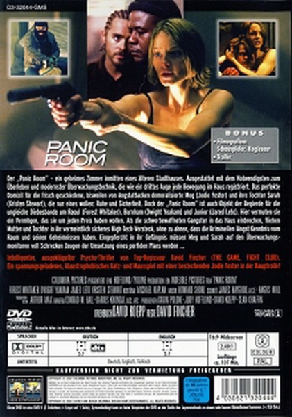 Tauchen Sie ein in ein meisterhaft inszeniertes Spannungsszenario mit "Panic Room" auf DVD. Diese preisgekrönte Produktion, in der die brillante Jodie Foster die Hauptrolle spielt, ist ein Muss für jeden Liebhaber von Thriller und Krimis. Der Film stammt vom renommierten Regisseur von "Fight Club" und glänzt durch eine packende Handlung, die Sie von Anfang bis Ende fesseln wird. Die hochwertige DVD bietet gestochen scharfe Videoqualität und eine beeindruckende Audioleistung, um dieses einzigartige Home-Entertainment-Erlebnis zu maximieren.