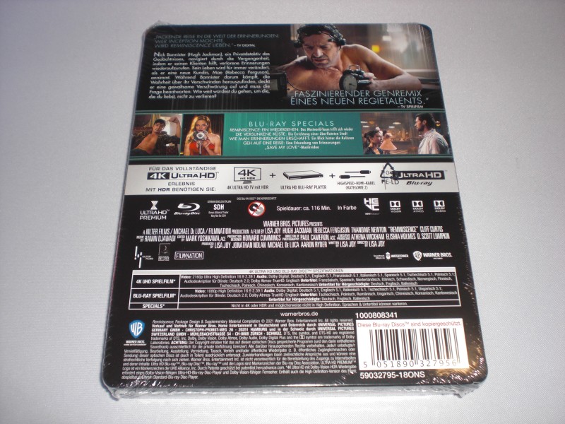 Dieses Set enthält sowohl die 4K Ultra HD- als auch die Blu-Ray-Version von "Reminiscence", sodass Sie den Film auf verschiedenen Geräten genießen können. Die exklusive Steelbook-Verpackung ist nicht nur ein Hingucker, sondern auch robust und stabil, um Ihre Discs zu schützen. Sie macht sich hervorragend in jeder Filmsammlung und ist ein Muss für echte Fans und Sammler.
