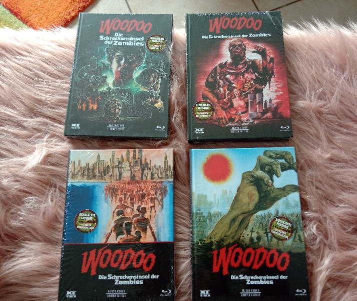 Jedes der Mediabooks präsentiert das ikonische Zombie-Epos „WOODOO - Die Schreckensinsel der Zombies“ in einer liebevoll gestalteten und stark limitierten Sammleredition. Die Cover A-D sind alle unverwechselbar und laden dich ein, die Dunkelheit und Bedrohung der Zombie-Apokalypse auf verschiedenen künstlerischen Wegen zu erleben. Diese Vielfalt an Covern macht die Sammlung zu einem absoluten Muss für jeden Fan des Horror-Genres.