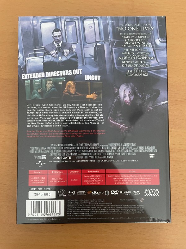 Tauchen Sie in die düstere und erschreckende Welt von Clive Barker's Kultklassiker "Midnight Meat Train" ein! Diese exklusive Mediabook Edition bietet nicht nur den ungeschnittenen Film in gestochen scharfer Blu-ray Qualität, sondern ist auch ein absolutes Must-Have für alle Sammler und Horrorfans. Die fein gestaltete Cover-F-Edition ist neu und originalverpackt (OVP), was sie zu einem echten Sammlerstück macht. Erleben Sie die packende Geschichte um den mysteriösen Serienkiller, die Sie von der ersten bis zur letzten Minute in ihren Bann ziehen wird. Perfekt für einen gruseligen Filmabend oder als Highlight in Ihrer Sammlung!