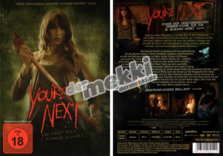 Regisseur Adam Wingard bringt mit YOU´RE NEXT einen Horror-Invasion-Schocker der Extraklasse auf die Leinwand. Gekonnt spielt er mit einer der größten Urängste und garniert das Ganze mit einer geballten Ladung Action, packender Dramatik und knochenmarkgefrierendem Realismus.