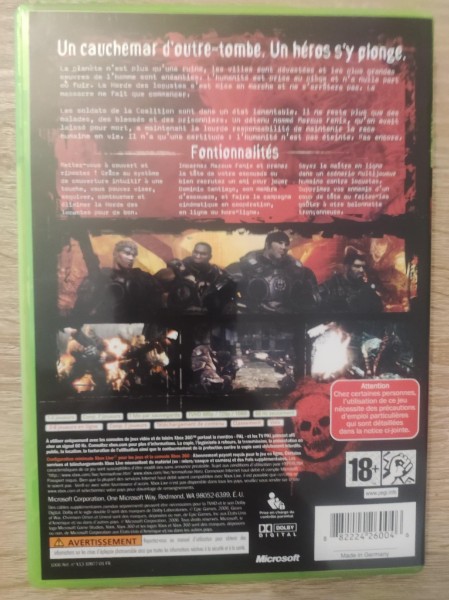 Die vorliegende französische Version macht das Angebot zusätzlich spannend, gerade für Sammler und Fans internationaler Releases. Wer gezielt nach einer Ausgabe für die Xbox 360 sucht, findet hier einen Namen, der Gewicht hat - schlicht, bekannt und mit echtem Wiedererkennungswert. Gears of War bleibt ein Titel, der nicht nur nostalgisch wirkt, sondern auch heute noch nach ikonischer Konsolen-Action klingt.