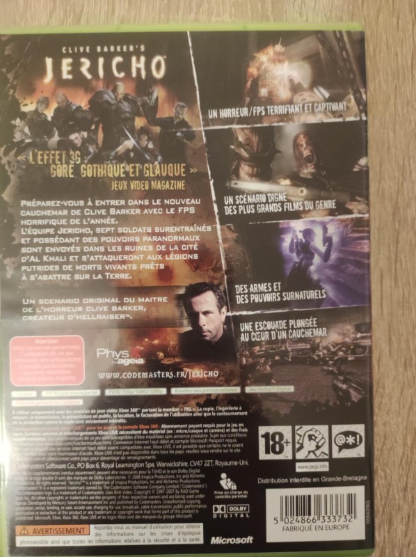 Mit einer fesselnden Handlung, die von einer schlagkräftigen Elite-Einheit erzählt, müssen Sie tödliche Gegner bezwingen und verzweifelte Rätsel lösen, um das unvorstellbare Böse zu besiegen. Die packende Atmosphäre, unterstützt durch atemberaubende Grafik, lässt keinen Raum für Langeweile. Die PEGI 18 Einstufung verdeutlicht, dass dieses Spiel speziell für erfahrene Gamer geschaffen ist, die sich nicht vor Intensität und anspruchsvollen Spielszenarien scheuen. Lassen Sie sich von "Clive Barker''s Jericho" auf der X-BOX 360 herausfordern und in eine Welt voller Schrecken und unvergleichlicher Abenteuer hineinziehen.