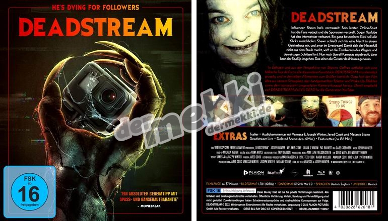 Extras: Trailer / Audiokommentar mit Vanessa & Joseph Winter, Jared Cook und Melanie Stone / Deadstream Live / gelöschte Szenen (ca. 4 Min) / Featurettes (ca. 86 Min)