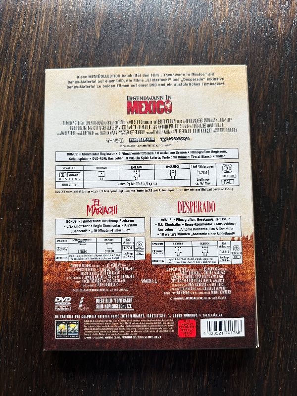 Tauchen Sie ein in die explosive Welt von Action und Abenteuer mit der MexiCollection, die die fesselnden Filme "El Mariachi", "Desperado" und "Irgendwann in Mexico" vereint. Diese außergewöhnliche Sammlung bringt das Beste aus der Action- und Abenteuerfilmwelt direkt in Ihr Wohnzimmer.