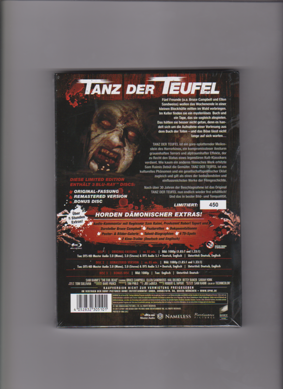 Dieses Mediabook bringt Ihnen "TANZ DER TEUFEL" in nie dagewesener Qualität. Es enthält nicht nur die Original-Fassung des Films, sondern auch eine aufwendig remasterte Version, die in brillanter Bild- und Tonqualität erstrahlt. Des Weiteren erwartet Sie eine prall gefüllte Bonus Disc mit über einer Stunde zusätzlichem Material!