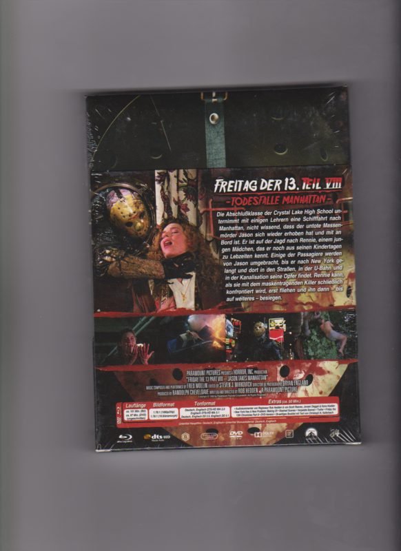 Audiokommentar; New York Has A New Problem: Making of; Slashed Scenes; Verpatzte Szenen; Trailer; Friday the 13th Chronicles Part 8; DVD-Version; 28-seitiges Booklet;