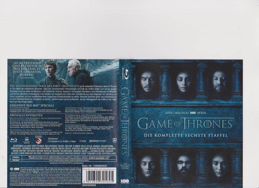 Tauchen Sie ein in die Welt von Game of Thrones und holen Sie sich jetzt die komplette sechste Staffel auf Blu-ray – ein absolutes Highlight für alle Fans der Serie!