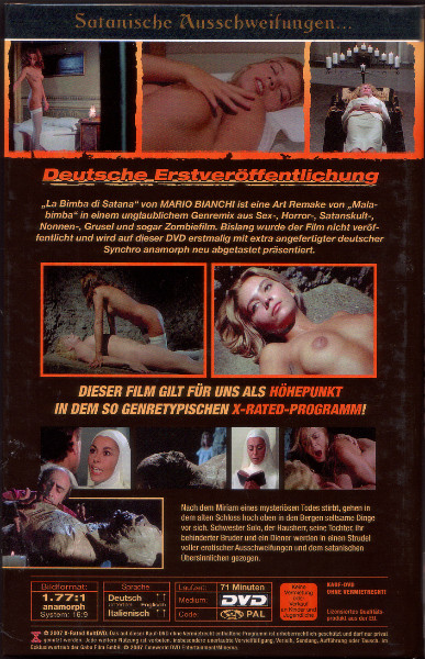 Tauchen Sie ein in die düstere und verführerische Welt des Exploitation Cinema mit der kultigen DVD "Sexorgien im Satansschloss". Dieser Film ist ein unverzichtbarer Klassiker für jeden Liebhaber des Genres, der sowohl durch seine packende Handlung als auch durch seine provokante Inszenierung besticht. Regie führte kein Geringerer als der renommierte Mario Bianchi, der es versteht, das Unheimliche und das Verlockende genial miteinander zu verbinden.