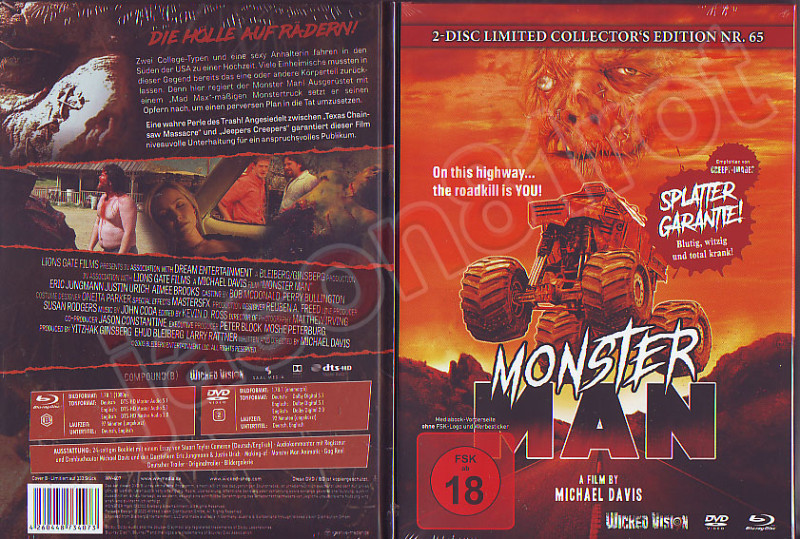 Monster Man - Lim. Mediabook 333 Cover B NEU OVP richtet sich an alle, die bei Horror nicht nur an Atmosphäre denken, sondern auch an Kultfaktor, harte Kante und das spezielle Vergnügen an überzeichneter, blutiger Genre-Kost. Wenn du mit dem Begriff Splatter etwas anfangen kannst und dir Horror gern auch mal wie ein wilder Roadtrip aus dem B-Movie-Universum vorkommen darf, ist das hier ein Treffer - zum Schauen, Sammeln oder Weglegen als limitierte Ausgabe.