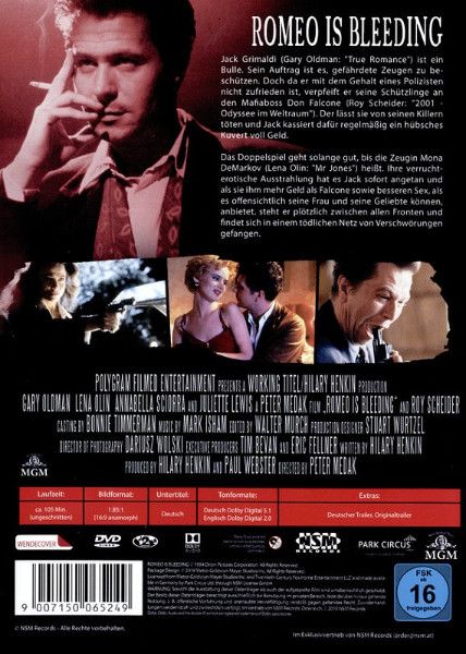 Entdecke den fesselnden Thriller "Romeo Is Bleeding" jetzt in der UNCUT-Version auf DVD! Dieses Meisterwerk, besetzt mit Top-Schauspielern wie Gary Oldman, Lena Olin und Annabella Sciorra, bietet dir Spannung pur. Im Mittelpunkt der Geschichte steht der korrupte Polizist Jack Grimaldi, gespielt von Gary Oldman, dessen Leben in einer Spirale von Verrat und Gewalt versinkt. Mit einer fesselnden Handlung, dramatischen Wendungen und intensiven Performance überzeugt dieser Krimi/Thriller und lässt dich bis zur letzten Minute in Atem halten. Verpasse nicht die Gelegenheit, diese ungeschnittene Version zu erleben und lasse dich von der düsteren Atmosphäre und den komplexen Charakteren begeistern. Perfekt für jeden Thriller-Fan und ein Muss für jede gut sortierte DVD-Sammlung!