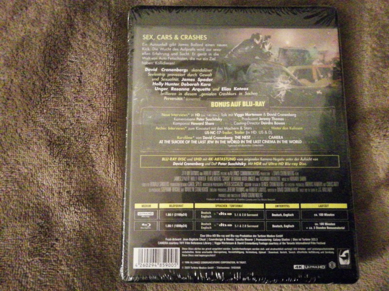 Die 4K Ultra HD + Blu-ray Edition von „Crash“ ist besonders für Liebhaber von hochwertigen Heimkinoerlebnissen geeignet. Genießen Sie die ungekürzte, FSK-18 Version mit gestochen scharfer 4K-Abtastung und mehr als drei Stunden Bonusmaterial, das tiefere Einblicke in die Entstehung dieses außergewöhnlichen Films bietet. Diese Ausgabe ist ein Must-Have für Sammler und Filmfans gleichermaßen.
