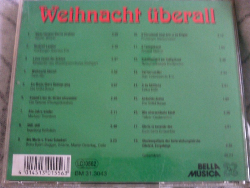 Tauchen Sie ein in eine besinnliche und herzerwärmende Weihnachtsstimmung mit der einzigartigen CD "Weihnacht überall". Diese exklusive Sammlung bietet Ihnen eine Auswahl der schönsten traditionellen Weihnachtslieder, interpretiert von herausragenden Künstlern und Sängern. Lassen Sie sich von den festlichen Klängen verzaubern und gönnen Sie sich Momente der Ruhe und Besinnlichkeit in der hektischen Vorweihnachtszeit.