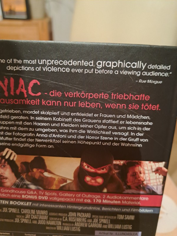 Neben dem Hauptfilm sind im Mediabook zahlreiche Extras enthalten, die tiefere Einblicke in die Welt von "Maniac" ermöglichen. Erleben Sie exklusive Interviews, dokumentarische Einblicke und vieles mehr, das Ihre Horrorfilm-Erfahrung perfektioniert. Diese Begleitmaterialien bieten einen enormen Mehrwert und machen das Mediabook zu einem Muss für Sammler und Fans des Genres.