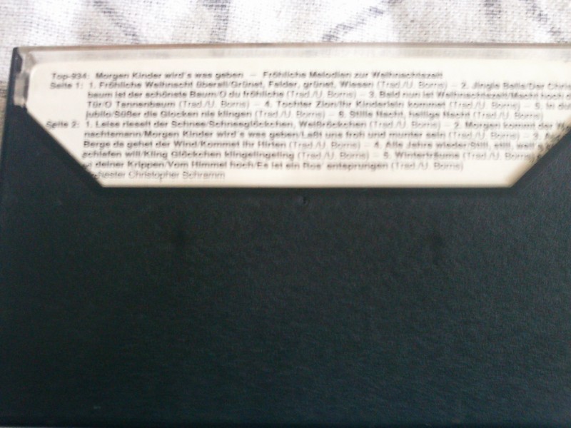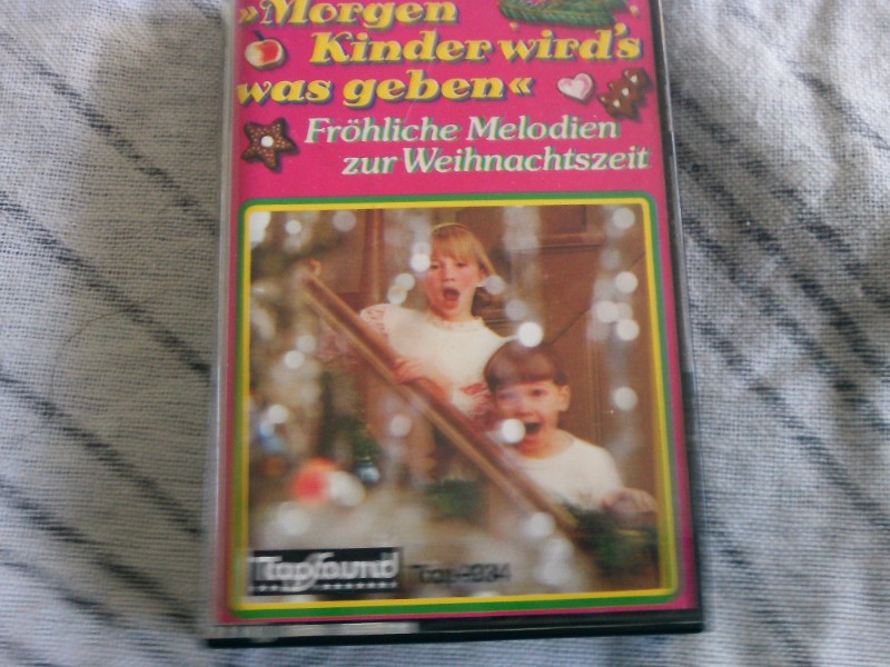 "Morgen Kinder wirds was geben" ist eine exklusive Sammlung fröhlicher Melodien zur Weihnachtszeit, präsentiert auf einer klassischen Musikkassette. Diese seltene Ausgabe, vertrieben von TopSound, umfasst eine Vielzahl an traditionellen und beliebten Weihnachtsliedern, die speziell darauf ausgerichtet sind, die festliche Stimmung in Ihrem Zuhause zu verstärken. Die Kassette, eine wunderbare Ergänzung für jede Sammlung von Weihnachtsmusik, eignet sich perfekt als stimmungsvolles Hintergrundmusik beim Weihnachtsessen oder beim Öffnen der Geschenke am Heiligen Abend. Bietet Ihre Familie eine musikalische Reise durch die wohl gemütlichste Zeit des Jahres – ideal für Sammler und Liebhaber nostalgischer Musikformate.