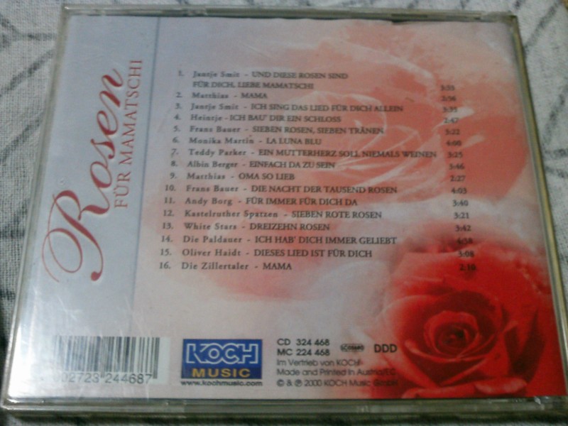 Entdecken Sie die herzergreifende Musiksammlung "Rosen für Mamatschi", eine Zusammenstellung unvergesslicher Lieder von beliebten deutschen Interpreten. Diese sorgfältige Auswahl an Schlagern und Volksmusik ist das perfekte Geschenk für jede Mutter und alle, die gefühlvolle Musik lieben. Im Mittelpunkt steht der charmante Sänger, dessen emotionale Darbietungen für viele zu einem festen Bestandteil des deutschen Musiklandschaft gehören. Die CD enthält Werke von bekannten Künstlern wie Jantje Smit, Kastelruther Spatzen, Heintje, Frans Bauer, Andy Borg, Die Paldauer, Monika Martin und vielen weiteren. Diese Künstler vereinen ihre einzigartigen Stimmen und Stile, um ein harmonisches und bewegendes Klangerlebnis zu schaffen, das jeden Raum mit Liebe und Nostalgie erfüllt.